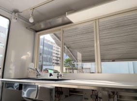 1tトラックだからこそ実現できる広々とした厨房スペース。軽キッチンカーの約1.5倍の作業エリアで、複数人での調理も余裕です。