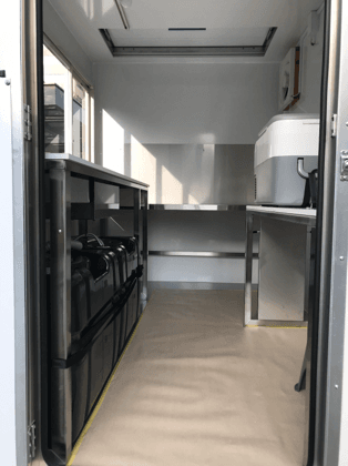 調理器材以外の保健所検査必要設備が全て整っています。納車後すぐに営業許可申請が可能です。